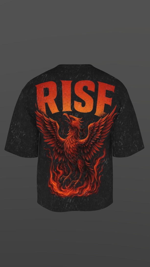 RISE ACID BLACK BOXY OVERSIZED TSHIRT